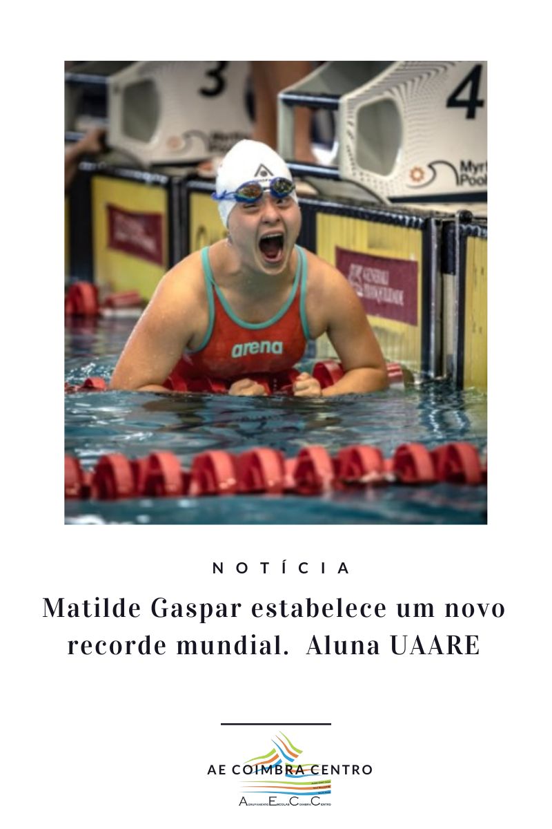 Matilde Gaspar, aluna UAARE da turma 2.º 3, terminou as eliminatórias de 200B com o tempo de 3:39.61, estabelecendo um novo recorde mundial.